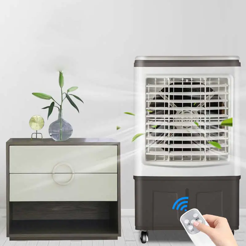 Tổng quan về nguyên tắc: Chức năng cốt lõi của máy làm mát không khí vẫn là “quạt”. Nó sử dụng máy bơm nước để làm ướt màn băng (hoặc tinh thể băng) và quạt thổi ra không khí ẩm, mát.